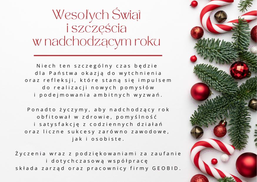 Informujemy naszych kontrahentów, że dni 10 i 12 listopada br. w firmie GEOBID są wolne od pracy. Świętujemy trzydziestolecie firmy GEOBID, a do Państwa dyspozycji jesteśmy od 15 listopada br.